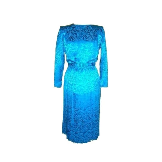 Vintage Stenay Blue Turquoise Sequin Silk Trophy Cocktail Dress