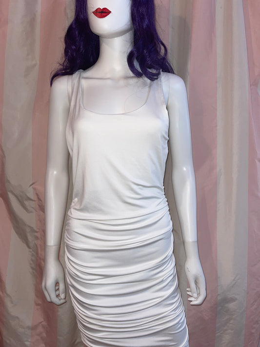 White Halter Plunge Ruche Stretch Dress