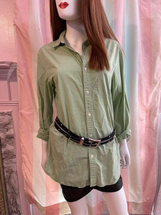 Green Checked Gingham Cotton Button Down Shirt