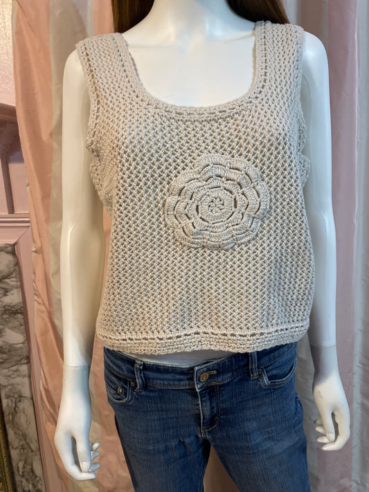 Beige Crochet knit macrame flower Tank Top