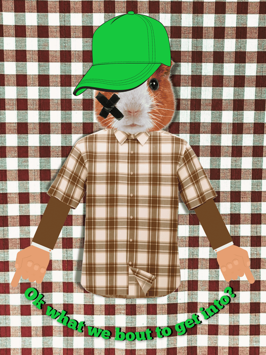 Modern Pop Art Ruff Rodent Brown Plaid Print by Suga Lane
