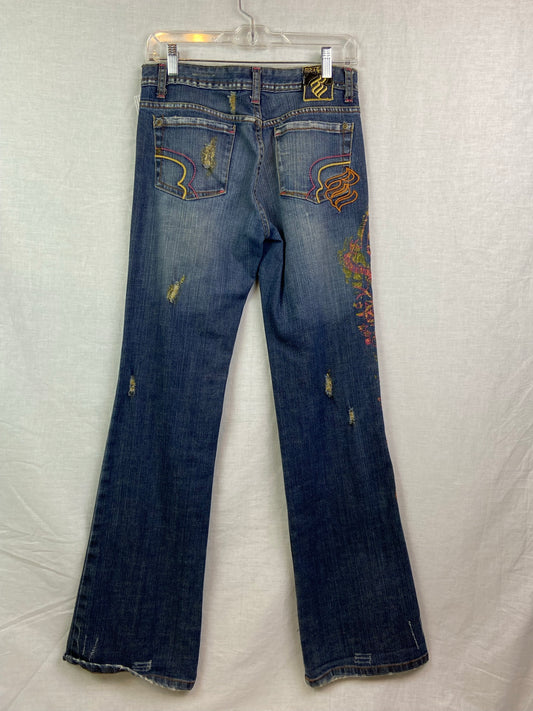 Vintage Rocawear Embroidered Gold Pink Blue Jeans Denim