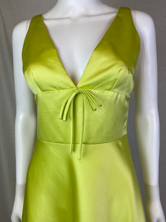 David Meister Lime Green Chartreuse Satin Plunge Dress
