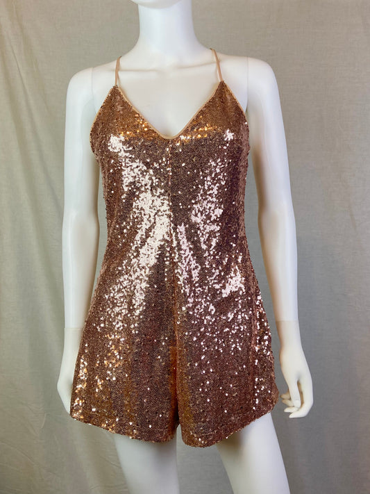 Forever 21 Champagne Gold Sequin Cocktail Shorts Romper