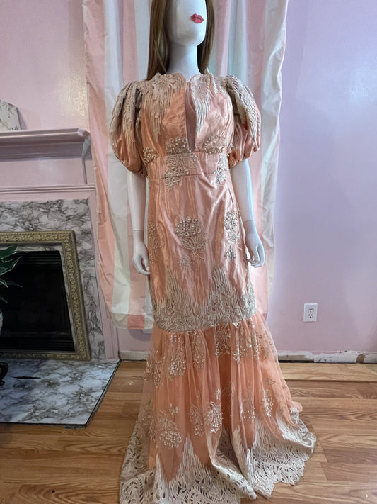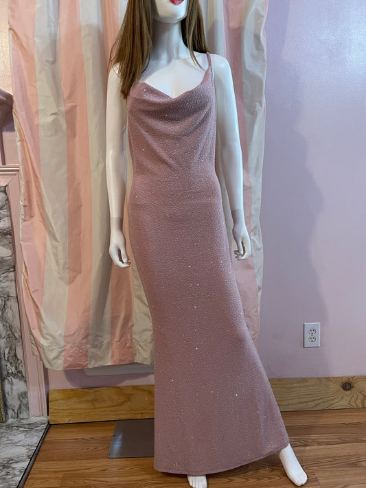Vintage Bianchi Pink Peach Silver Sequin Grecian Layered Silky Dress Small 2 4 Ld-2708