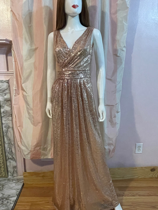 Gold Sequin Glam Plunge Wrap Gown Dress