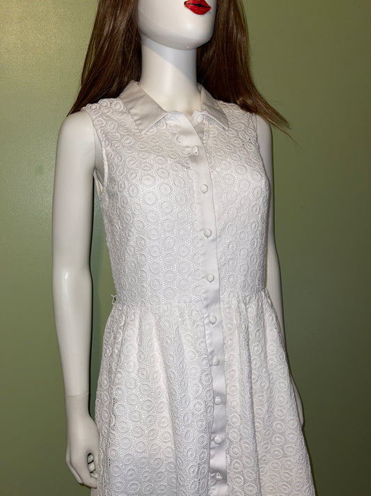 DRESS RENTAL WHITE LACE SLEEVELESS COTTON BOHO BUTTON UP WEDDING DRESS
