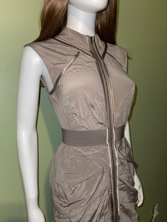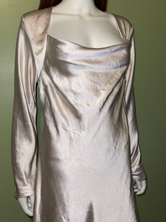 DRESS RENTAL BEBE TAN SILK SLEEVELESS DRESS SMALL XXS