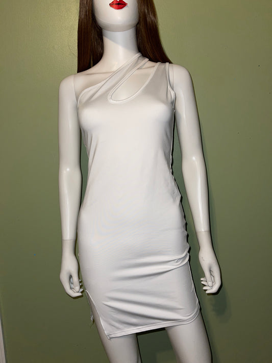 DRESS RENTAL WHITE asymmetrical one shoulder sleeveless stretch mini WEDDING DRESS
