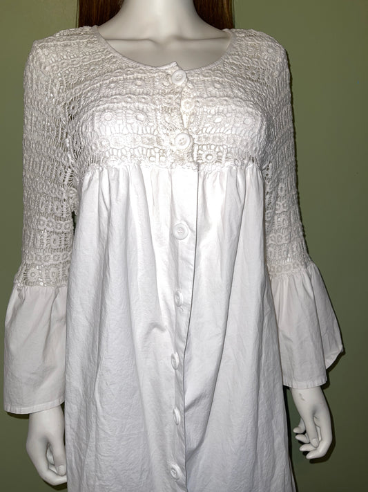 DRESS RENTAL WHITE LACE BUTTON UP FLARE SLEEVE WEDDING SMOCK