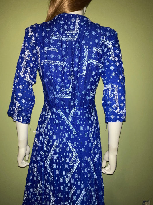 DRESS RENTAL BLUE WHITE EXOTIC ETHNIC KAFTAN