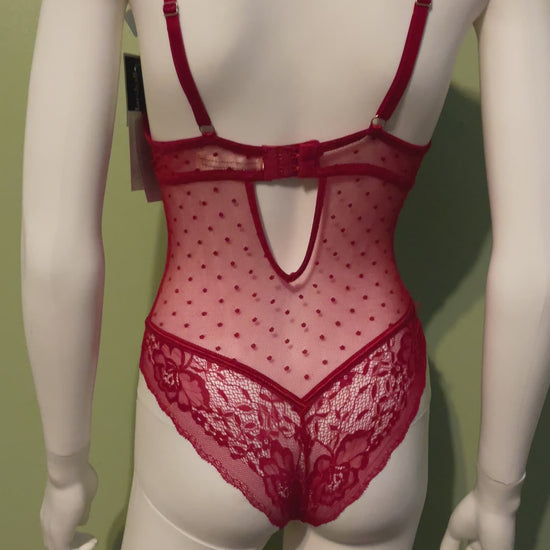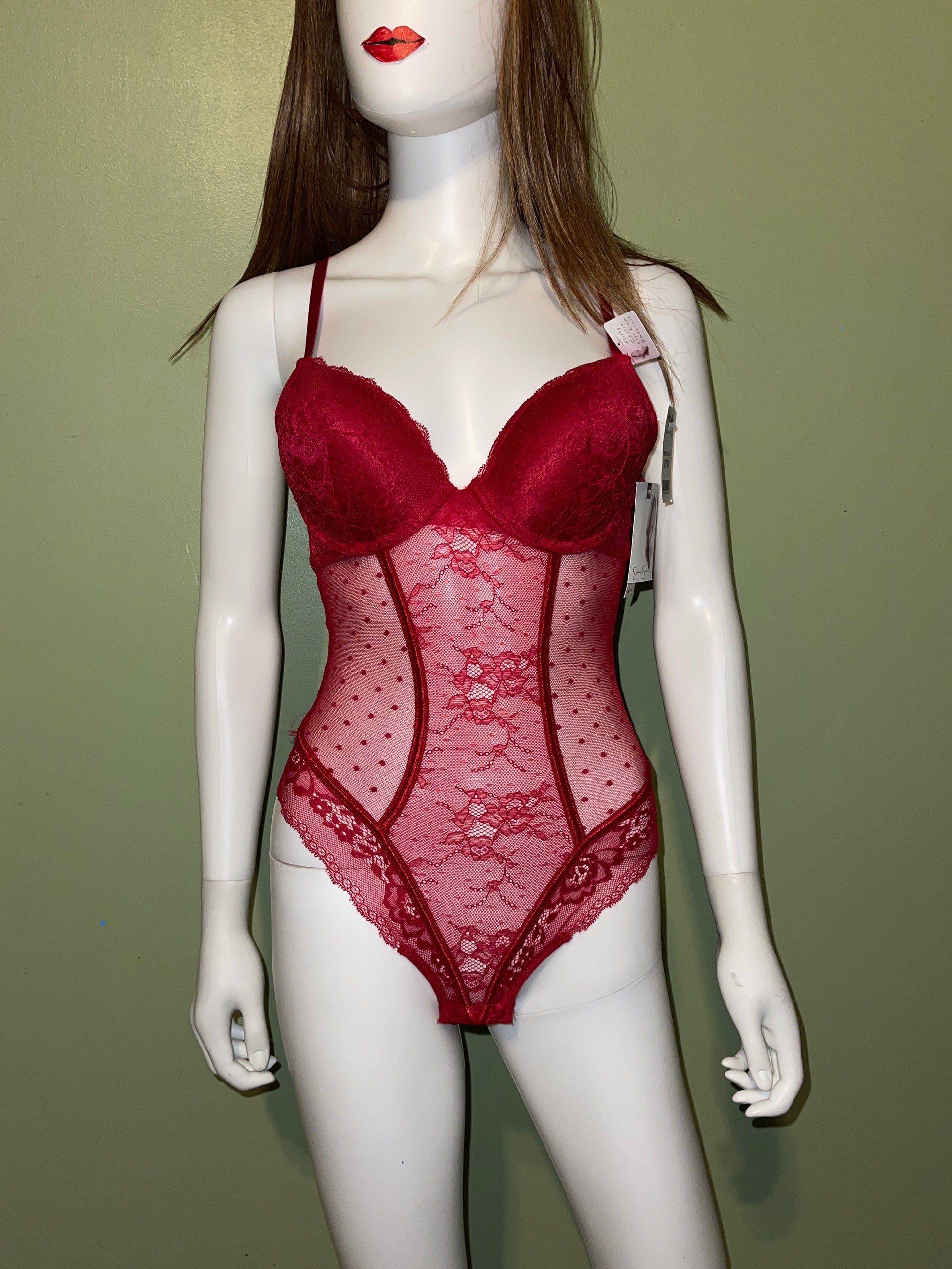BUY NOW - RED SHEER LACE LINGERIE BODYSUIT FRENCH lace padded bra
