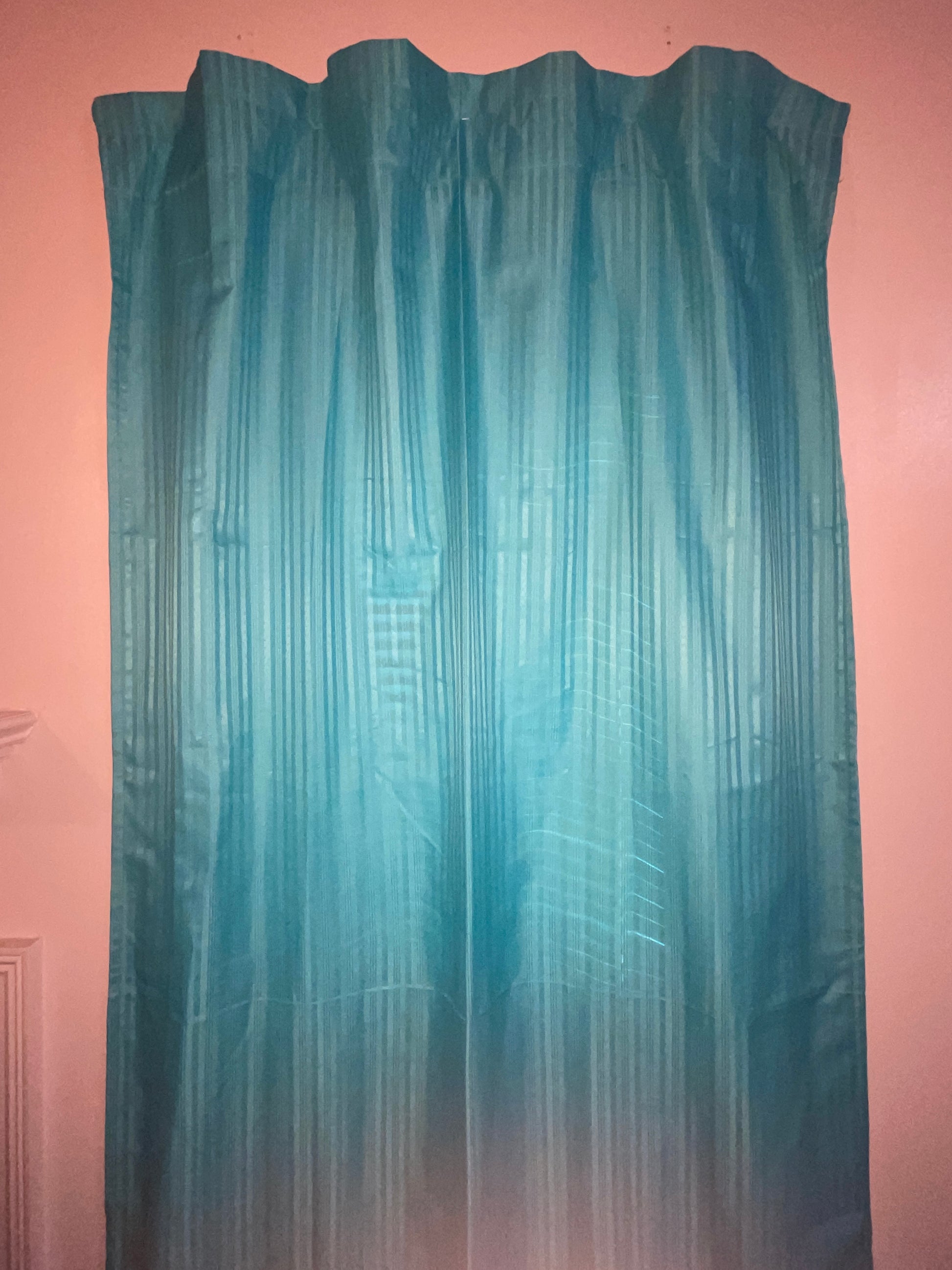 CURTAIN RENTAL TURQUOISE BLUE STRIPED SATIN SILK LINED CURTAIN PANELS fancy French Victorian